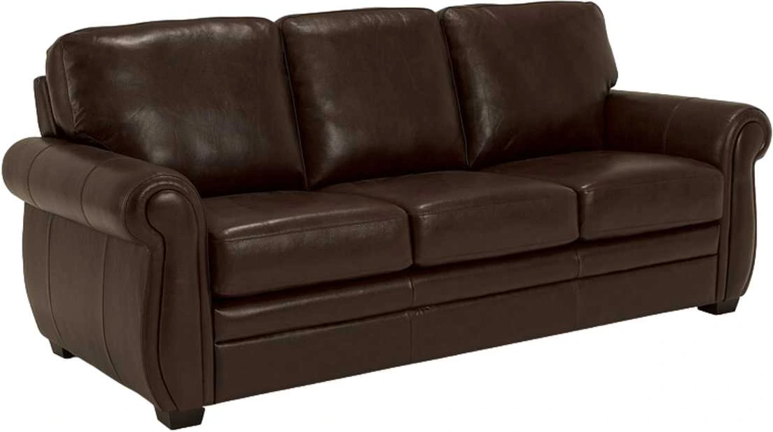 The Borrego doesn't skimp on charming traditional style. A clean and simple three-over-three seating construction is framed by an exaggerated rolled arm detail. Leather match upholstery accented by topstitching is available in Garnet or Walnut, two warm shades specially chosen to complement this classic sofa.Read More