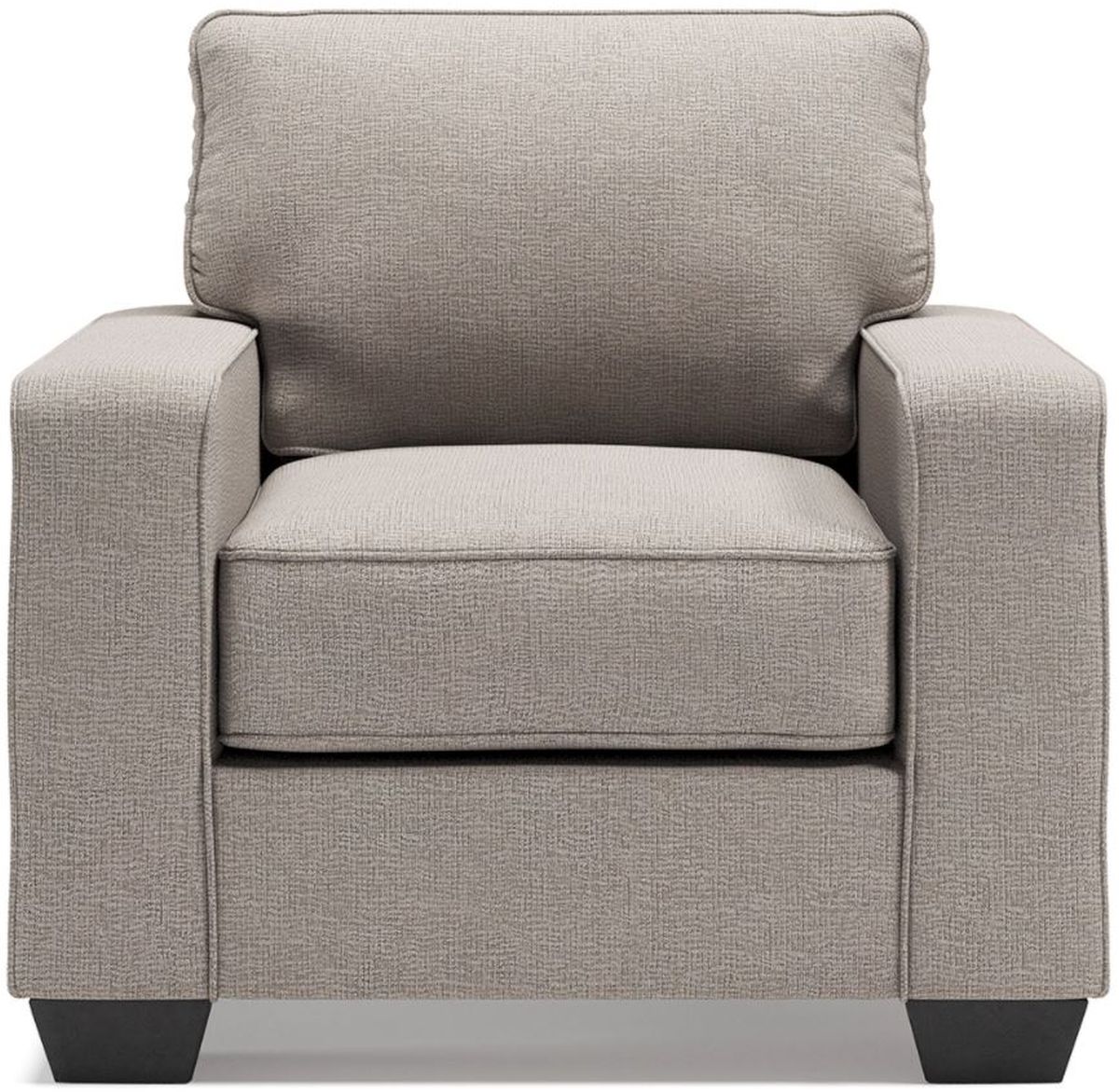 Make your living space that much more livable with this arm chair. Rest assured that its ultra-neutral upholstery with a textural chenille feel goes with anything and everything. Wide track armrests, box cushions and tapered feet lend a clean, contemporary aesthetic. Make it even more enticing by pairing it with the available matching ottoman and reserve yourself the best seat in the house.